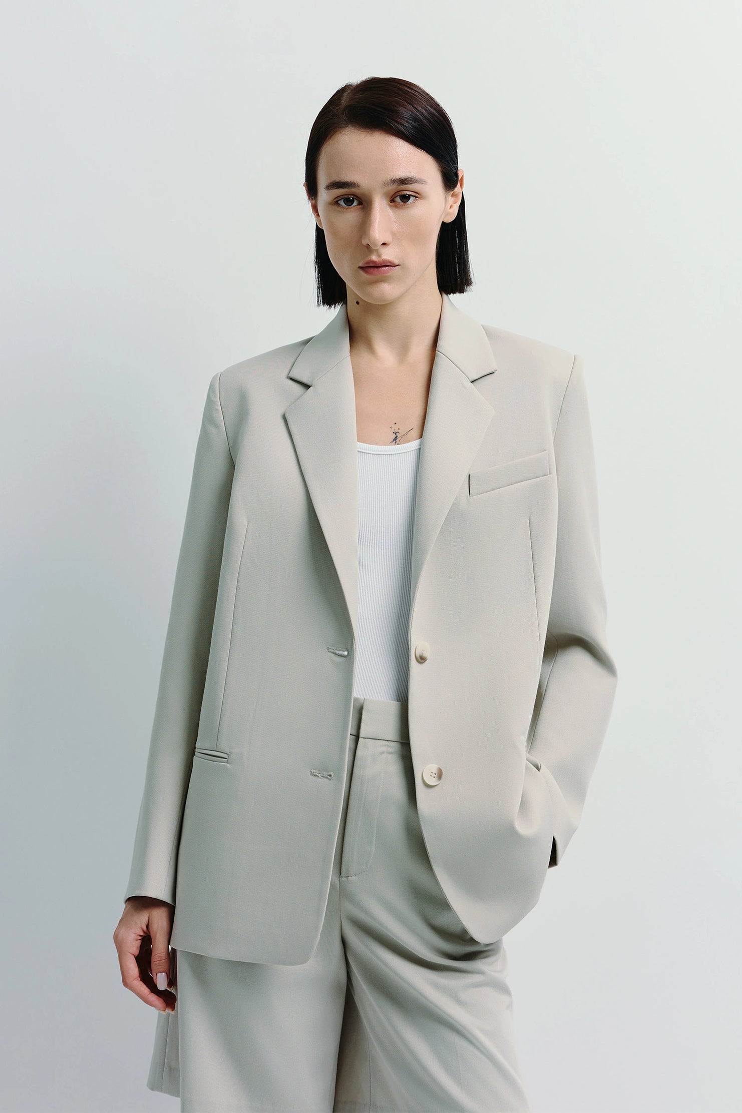 A boxy blazer made from a lyocell-rayon blend. Its relaxed fit and true-to-size design make it perfect for workwear or casual outings.