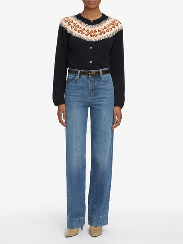FRAME |Fairisle Cardi in Navy Cashmere