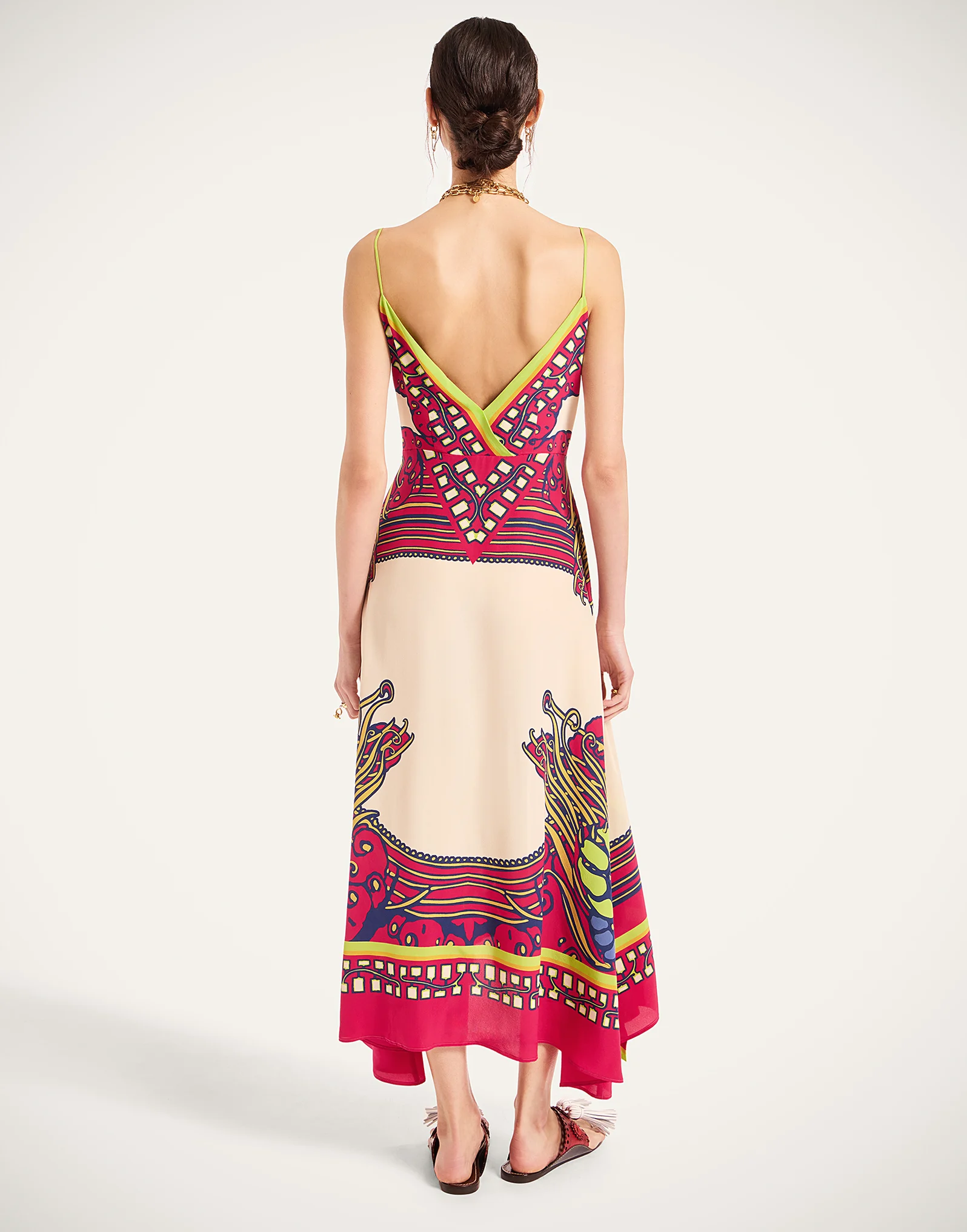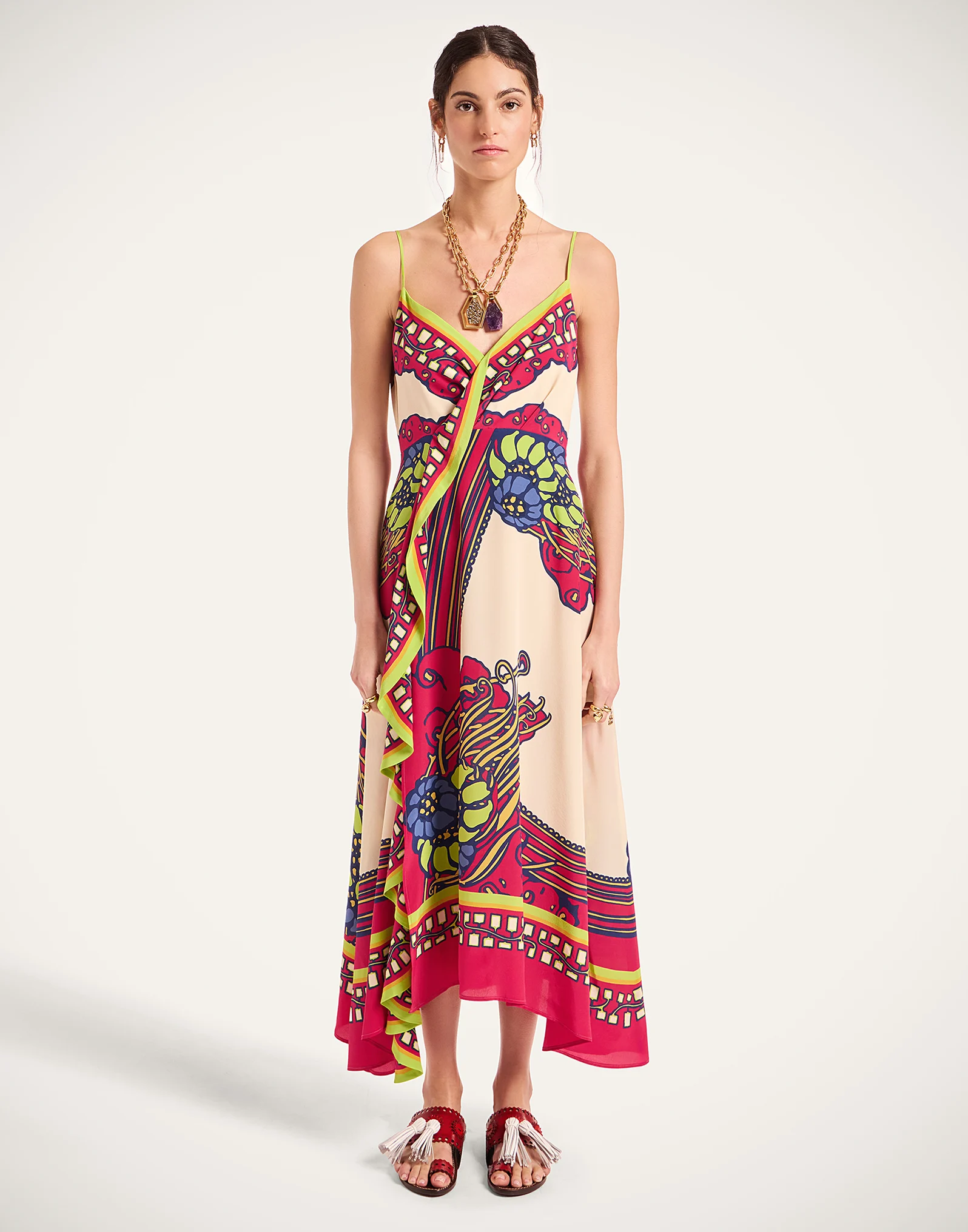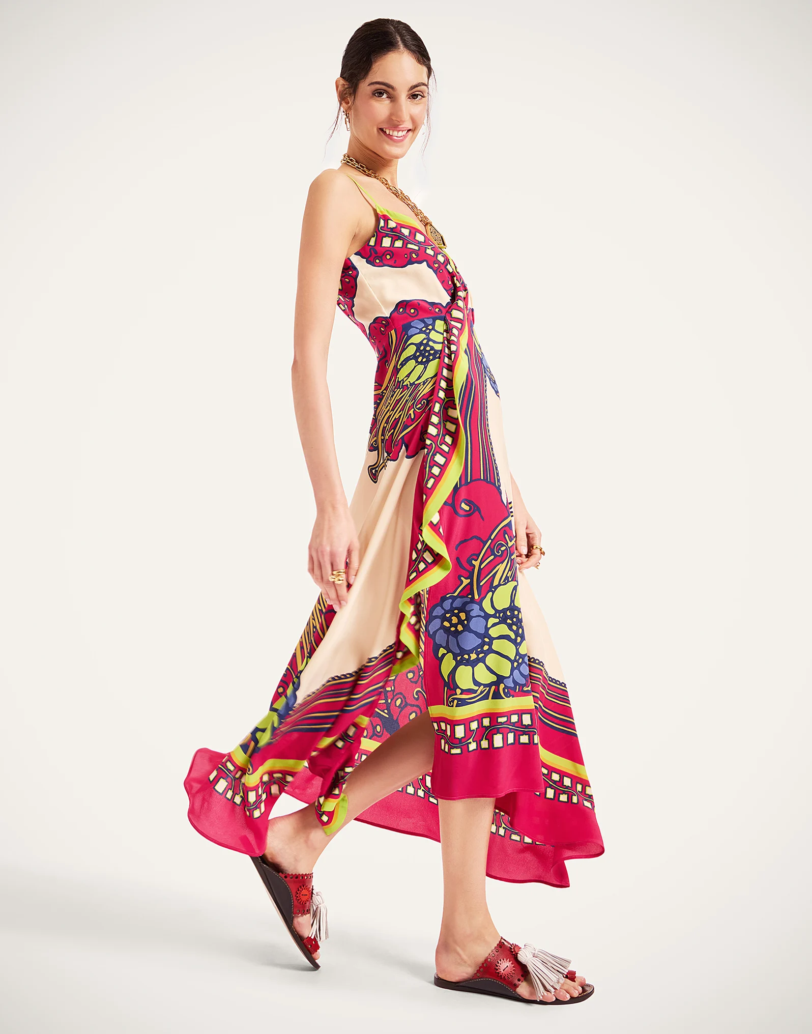 Cut on the bias in stunning crepe de chine in a hand-placed print, this piece is a true head-turner. It’s also draped to perfection to reveal a scandalously stunning leg slit as you swan down the lungomare. You could wear this under any of our light Better Than Your Boyfriend Jackets, but it’s also stunning as a standalone piece.