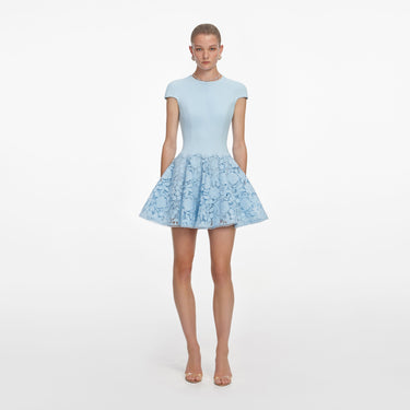 Self-Portrait | Blue Crepe Lace Mini Dress